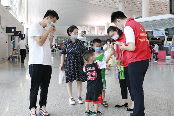 6月14日端午節,航站區中心“黨員初心站”在T3航站樓開展“香守初心 端陽傳情”節慶活動。活動現場,黨員初心站的志愿者向旅客贈送了精美香囊,傳遞端午祝福,宣揚民俗文化的獨特魅力。旅客紛紛表示,在端午節收到這樣一份禮物,不僅加深了對傳統節日民俗禮儀的了解,更對杭州機場的出行關懷有了更深印象。
