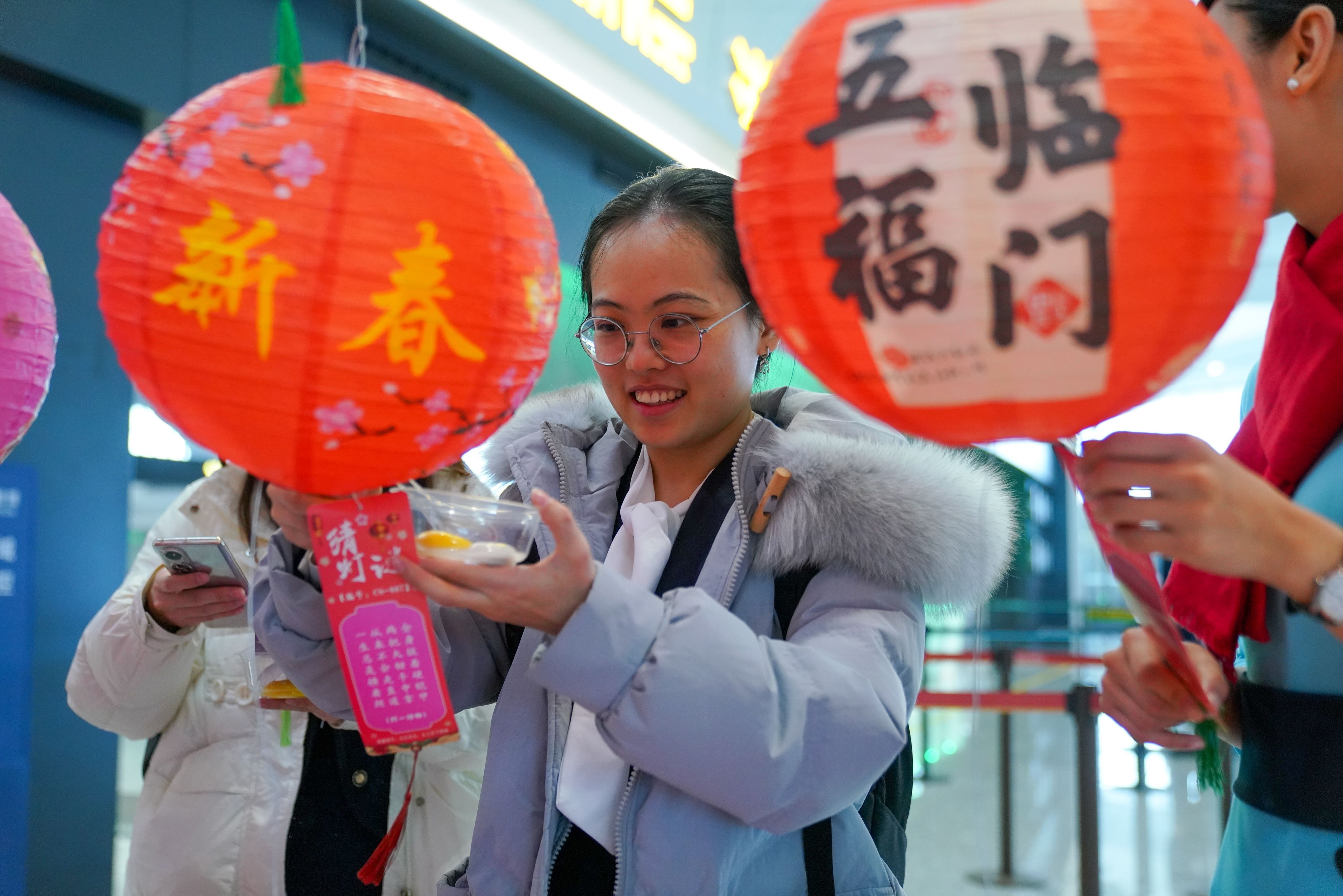 本次活動共設置三個獎項,共計350個獎品。參與者需先在兩處花燈墻選取自己有把握的燈謎,摘取謎紙后前往兌獎處核實答案,答對即可獲得一個游戲幣參與抽獎活動。現場精美的花燈也吸引旅客們紛紛駐足,一邊賞燈、一邊猜燈謎,現場歡聲笑語不斷。小朋友們更是興奮不已,他們在家長的陪伴下,積極參與猜燈謎活動,享受著這份獨特的節日樂趣。